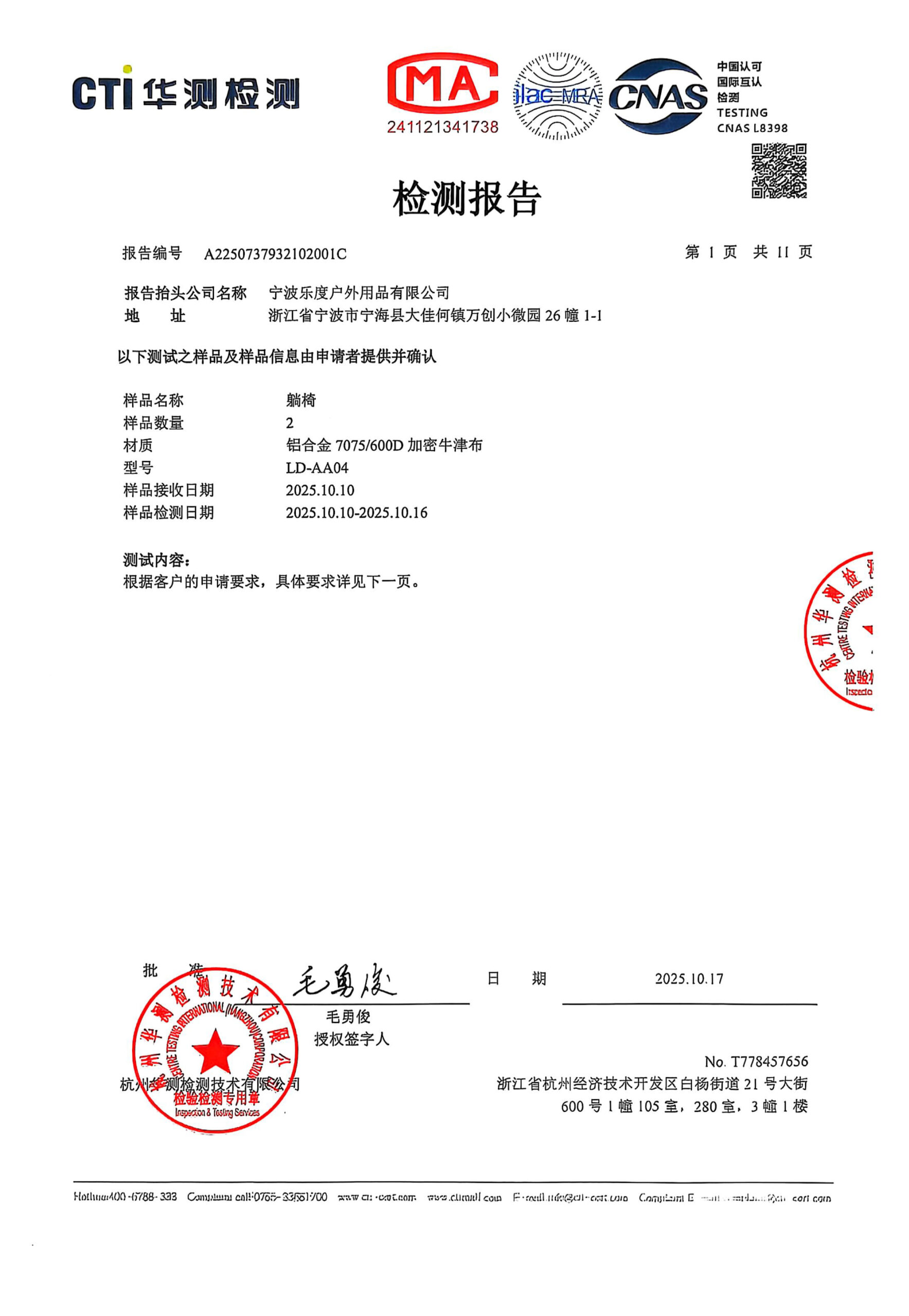 Test report - lounge chair